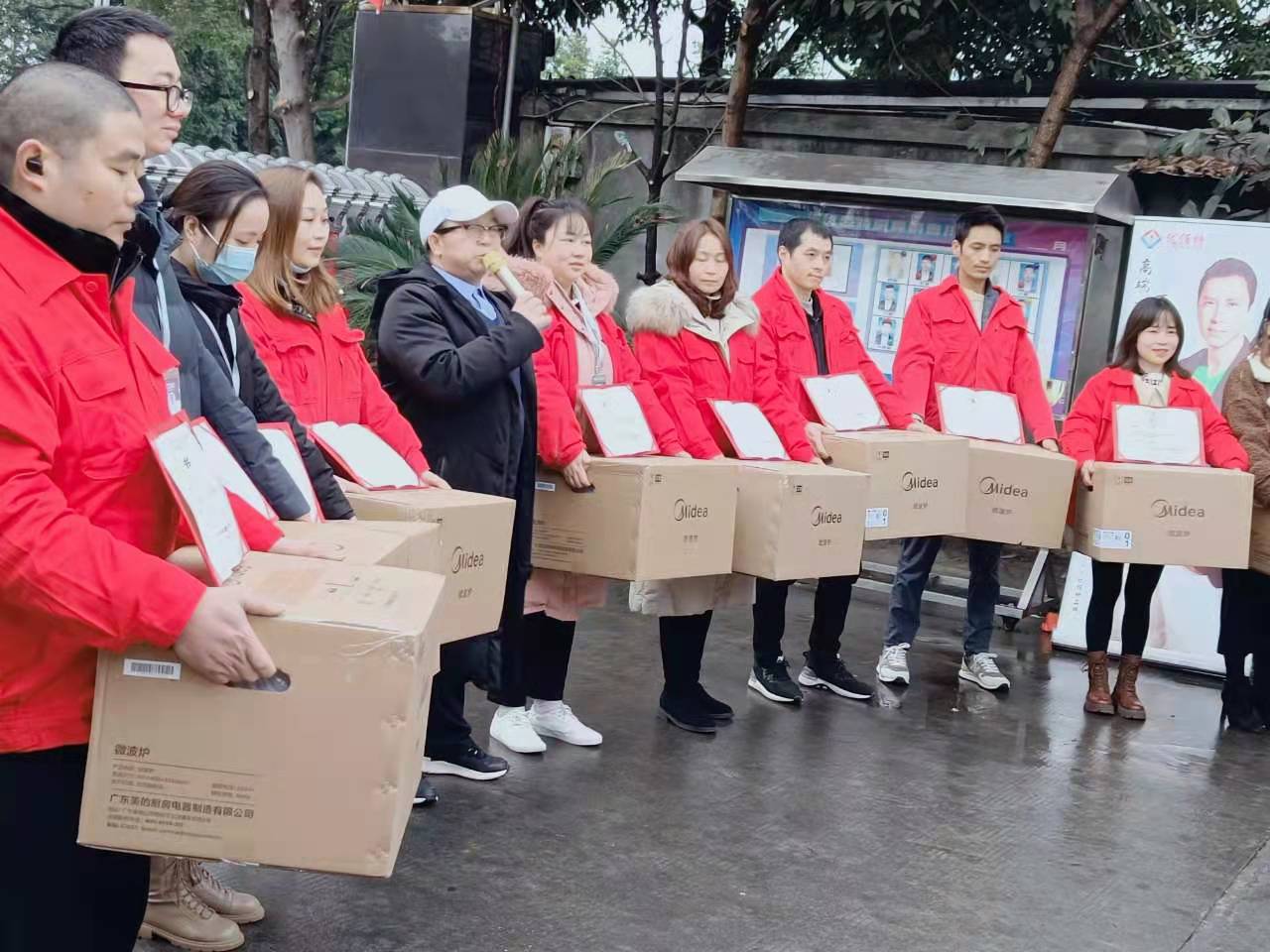 整個(gè)會(huì)場(chǎng)馬上又活躍起來,員工們開始排隊(duì)有序的領(lǐng)取公司的禮品,每個(gè)人兩只手都提滿了禮品,內(nèi)心充滿喜獲豐收的喜悅。