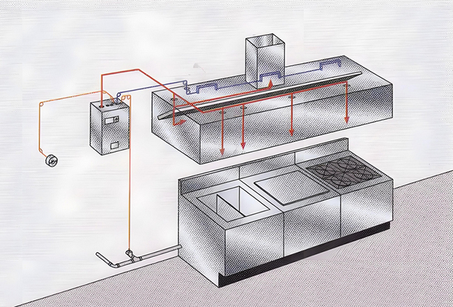 燃氣商用廚房滅火系統(tǒng)的工作原理大致如下: